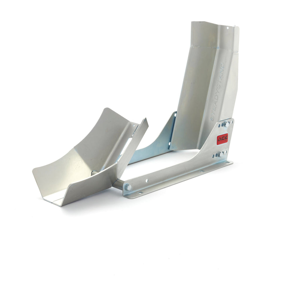 The galvanised Acebikes SteadyStand Fixed is designed to make clever use of gravity and is easily mountable onto trailer, van or pickup.