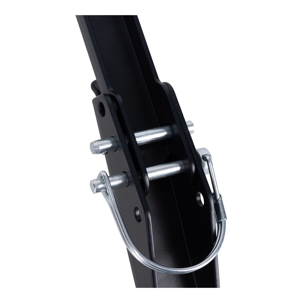 This latest version offers improved stability when loaded and additional user-friendly features. These include an anti-pinch tab to prevent hands getting caught when lifting the bike and a pull loop on the hinge pin to aid removal when lowering the stand.