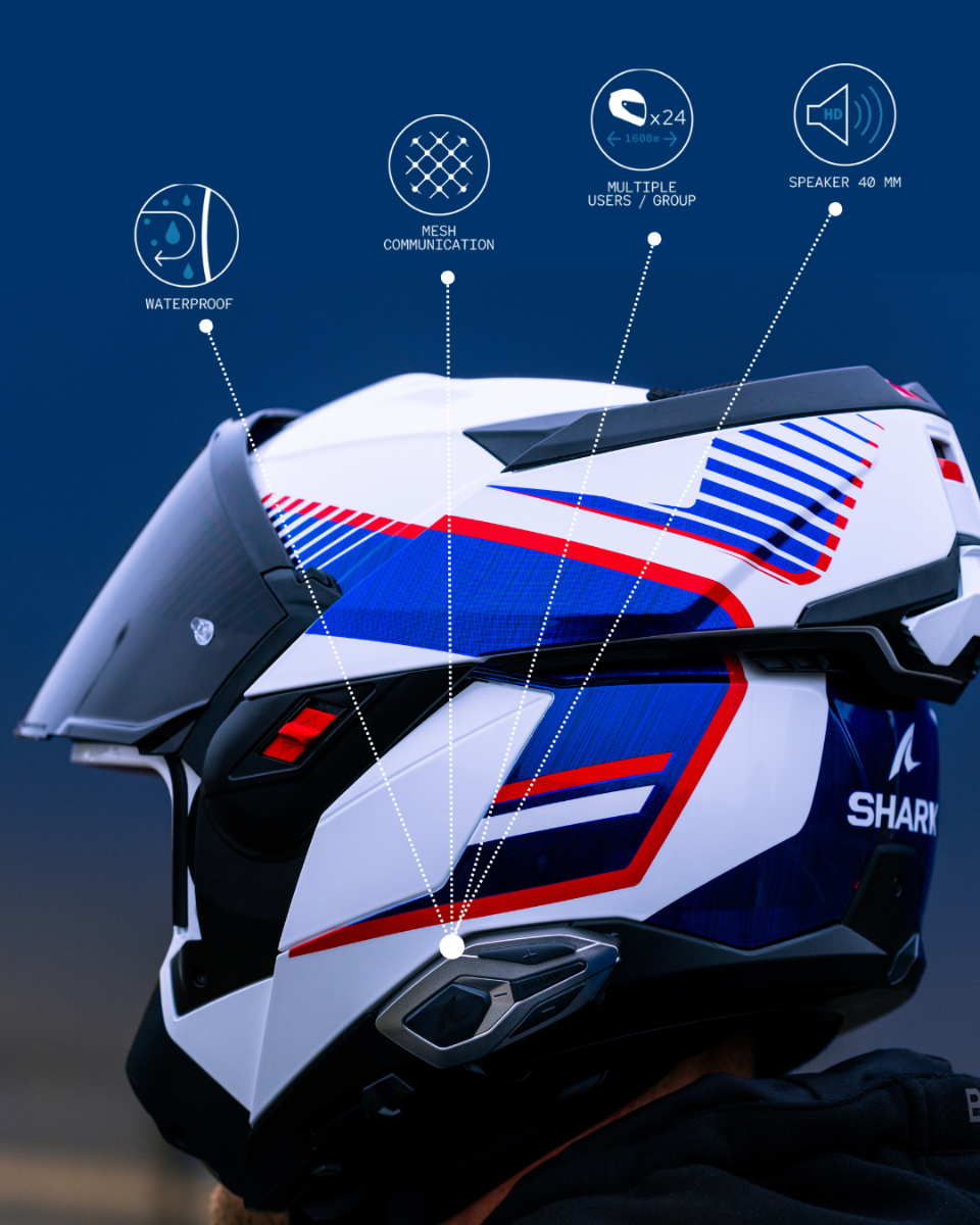 Be at the centre of the conversation - Communicate without limits with SENA for SHARK Fit design, approved and connected.