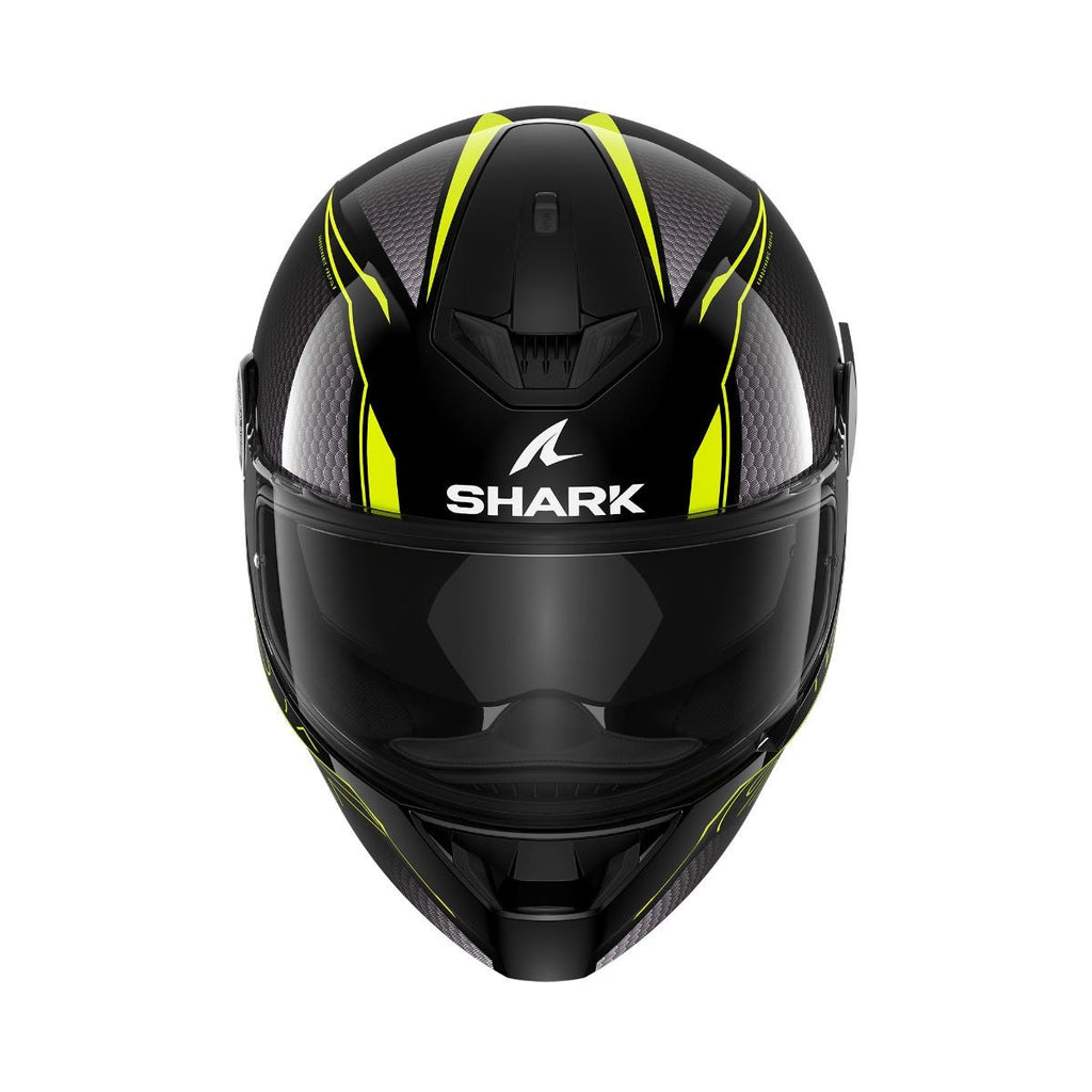 Type of helmet: Full-face GT helmet. Type of use: Roadster. The D-Skwal 2 offers outstanding aerodynamic enhancements thanks to its spoiler, providing for optimal fluidity and tremendous stability. It takes full advantage of a new ventilation configuration identical to that of the Skwal 2 model, to which it owes its inspiration. STRUCTURE AND SAFETY: Shell made of injected thermoplastic resin Micro lock buckle system Multi-density EPS VISOR: Pinlock Max Vision® included in the box UV380-labeled visor treated to resist scratches “Autoseal” system: enmeshes the visor into the helmet, thereby improving soundproofing and making the helmet resistant to both water and cold air Quick visor release system INSIDE: “BIRD EYES” lining fabric, black color Removable interior suitable for machine washing (30°C max) EasyFit system: optimal comfort for riders wearing glasses Dual use anti-fog breath guard removable Anti-fog mask Slot reserved for the Sharktooth® intercom AERODYNAMICS AND VENTILATION: 2 air inlets 2 air extractors Aerodynamics optimized by means of CFD (Computational Fluid Dynamics) design studies FINISH: New ventilation configuration identical to that of the SKWAL 2 model