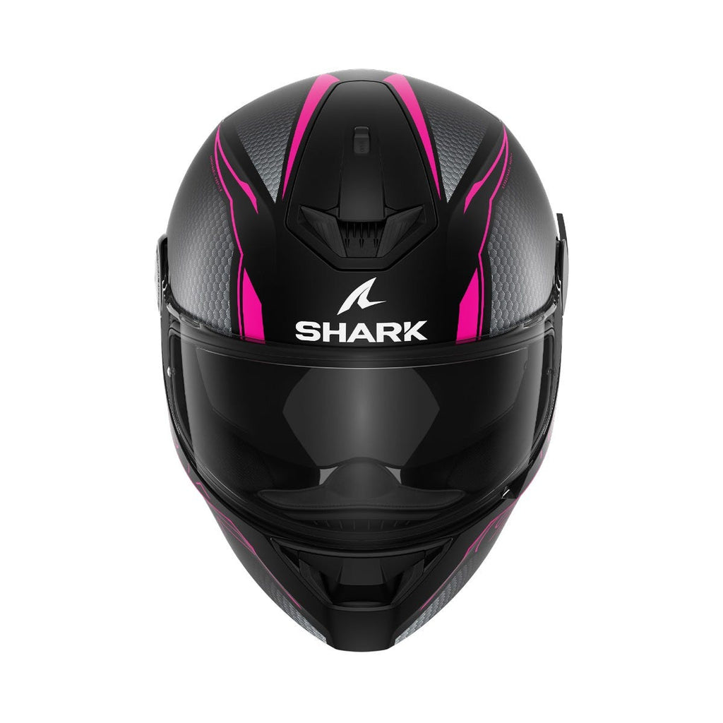 Type of helmet: Full-face GT helmet. Type of use: Roadster. The D-Skwal 2 offers outstanding aerodynamic enhancements thanks to its spoiler, providing for optimal fluidity and tremendous stability. It takes full advantage of a new ventilation configuration identical to that of the Skwal 2 model, to which it owes its inspiration. STRUCTURE AND SAFETY: Shell made of injected thermoplastic resin Micro lock buckle system Multi-density EPS VISOR: Pinlock Max Vision® included in the box UV380-labeled visor treated to resist scratches “Autoseal” system: enmeshes the visor into the helmet, thereby improving soundproofing and making the helmet resistant to both water and cold air Quick visor release system INSIDE: “BIRD EYES” lining fabric, black color Removable interior suitable for machine washing (30°C max) EasyFit system: optimal comfort for riders wearing glasses Dual use anti-fog breath guard removable Anti-fog mask Slot reserved for the Sharktooth® intercom AERODYNAMICS AND VENTILATION: 2 air inlets 2 air extractors Aerodynamics optimized by means of CFD (Computational Fluid Dynamics) design studies FINISH: New ventilation configuration identical to that of the SKWAL 2 model