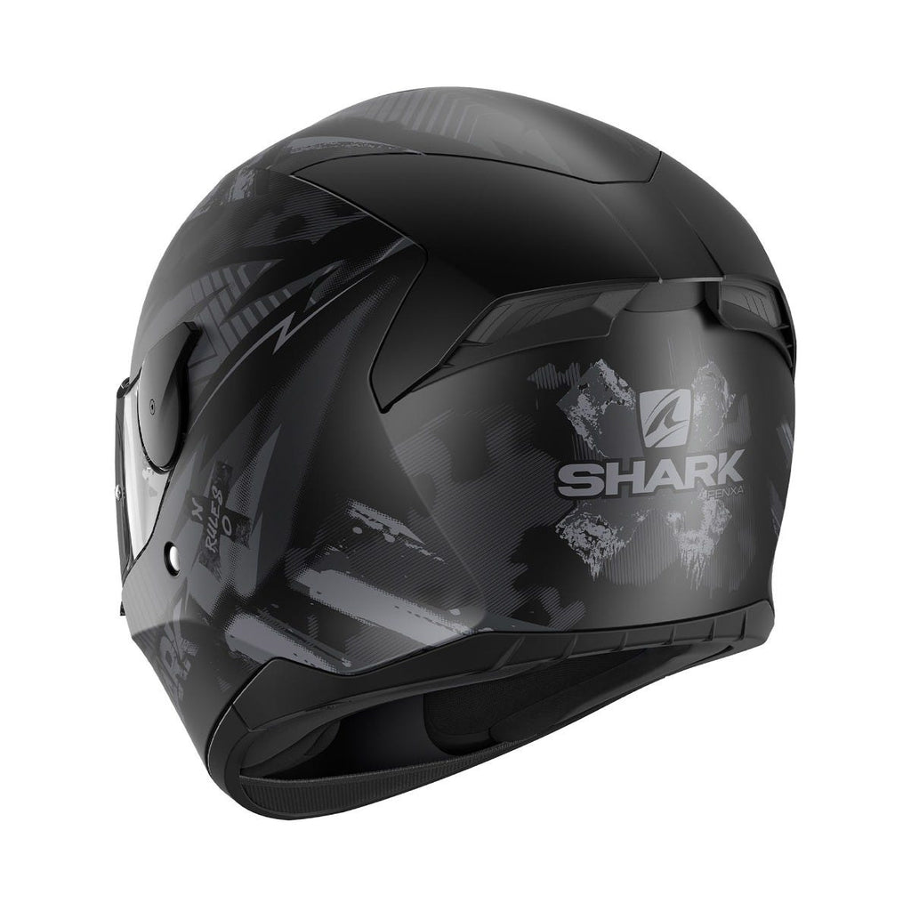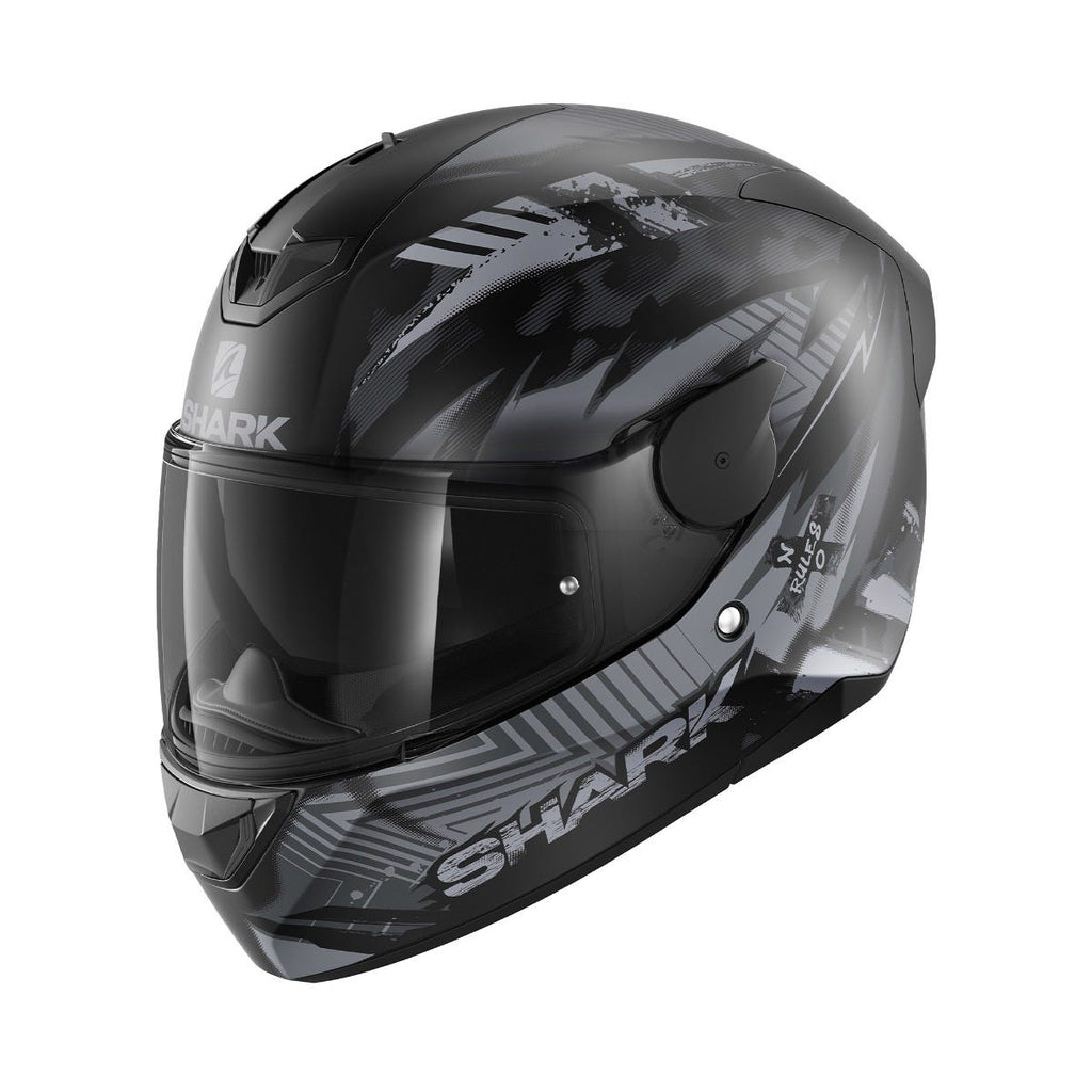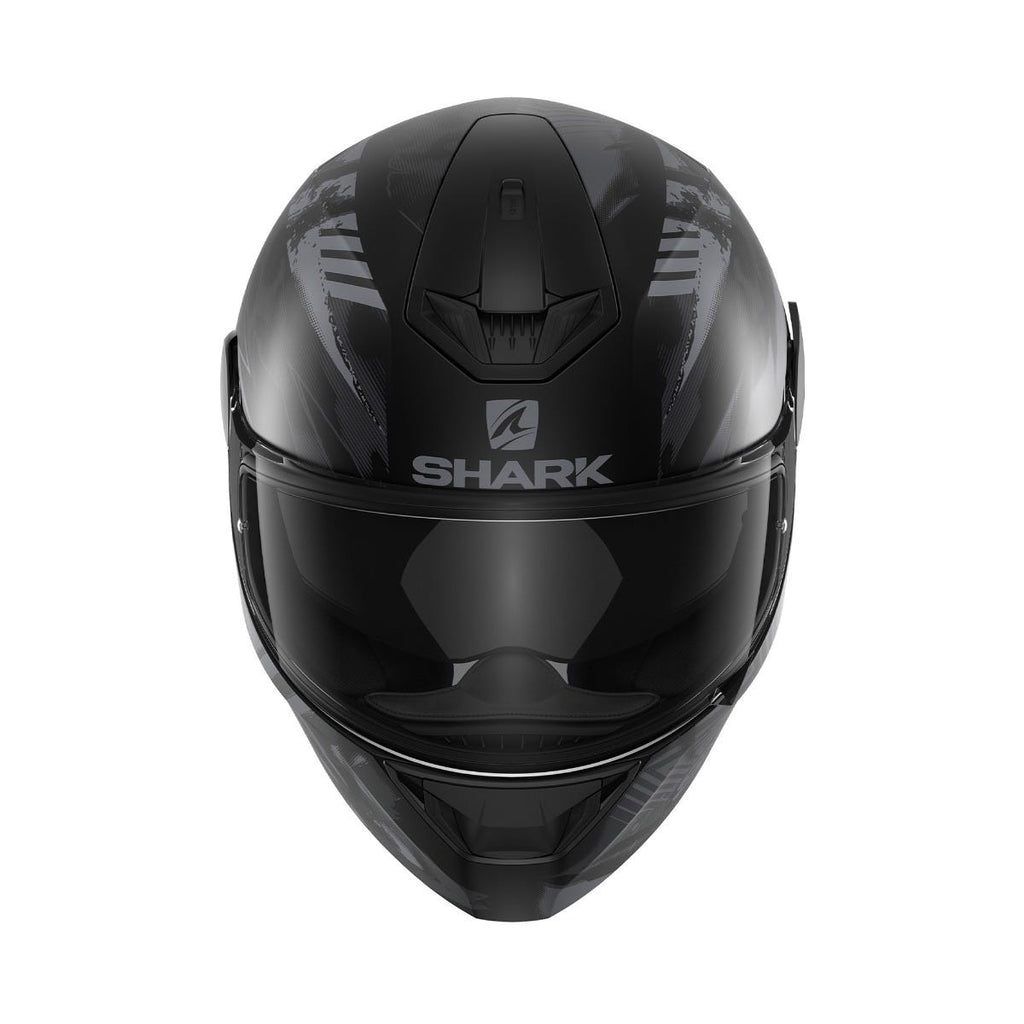 Type of helmet: Full-face GT helmet. Type of use: Roadster. The D-Skwal 2 offers outstanding aerodynamic enhancements thanks to its spoiler, providing for optimal fluidity and tremendous stability. It takes full advantage of a new ventilation configuration identical to that of the Skwal 2 model, to which it owes its inspiration. STRUCTURE AND SAFETY: Shell made of injected thermoplastic resin Micro lock buckle system Multi-density EPS VISOR: Pinlock Max Vision® included in the box UV380-labeled visor treated to resist scratches “Autoseal” system: enmeshes the visor into the helmet, thereby improving soundproofing and making the helmet resistant to both water and cold air Quick visor release system INSIDE: “BIRD EYES” lining fabric, black color Removable interior suitable for machine washing (30°C max) EasyFit system: optimal comfort for riders wearing glasses Dual use anti-fog breath guard removable Anti-fog mask Slot reserved for the Sharktooth® intercom AERODYNAMICS AND VENTILATION: 2 air inlets 2 air extractors Aerodynamics optimized by means of CFD (Computational Fluid Dynamics) design studies FINISH: New ventilation configuration identical to that of the SKWAL 2 model