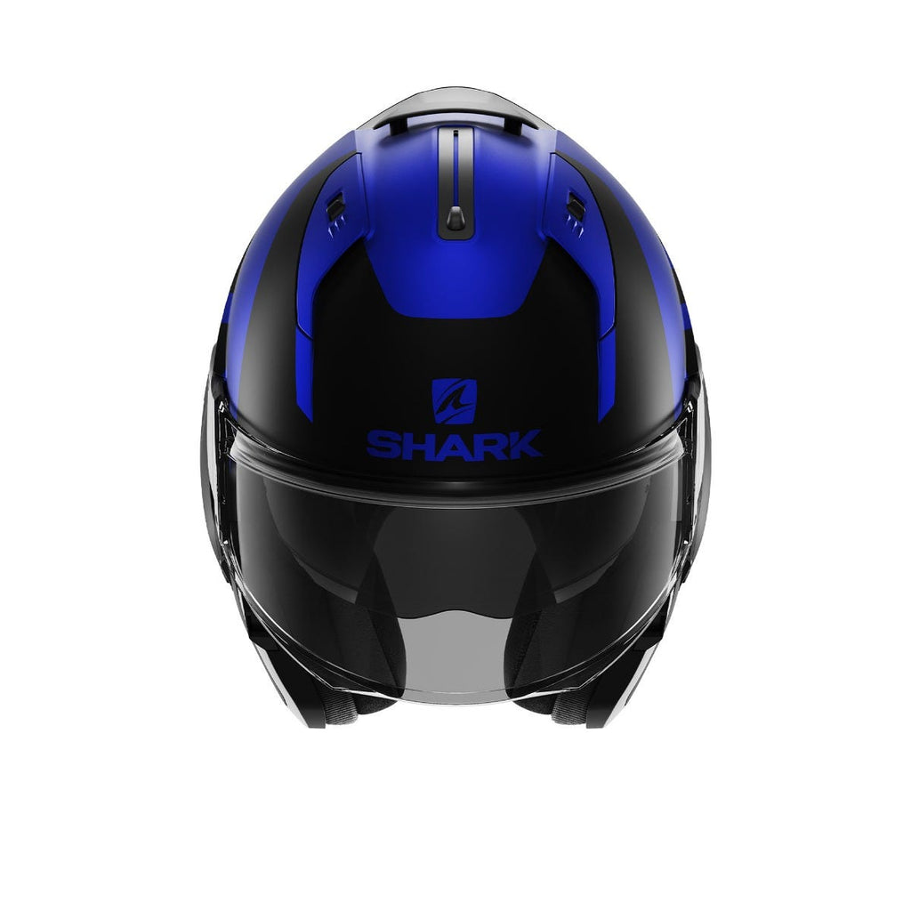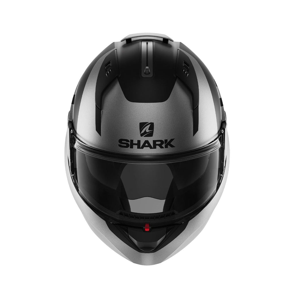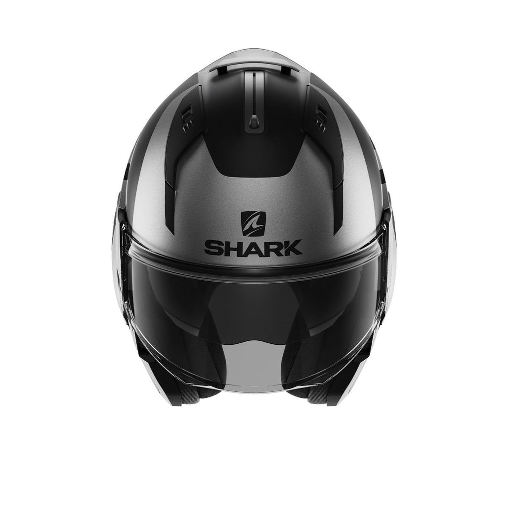 Type of helmet: Modular helmet certified for both jet and integral uses. Type of use: Scooter 125/Maxi scooter/GT Sport/Roadster. The EVO-ES embodies all of SHARK’s expertise in the design of modular helmets for daily users seeking to enjoy optimal protection whether in the jet or integral position. STRUCTURE AND SAFETY: Shell made of injected thermoplastic resin 2 shell sizes for optimal morphological adjustment Micro lock buckle system Multi-density EPS VISOR: VZ 150 model, anti-scratch and anti-fog visor The patented “Auto-up / Auto-down” system allows automatically lifting the visor upon raising or lowering the chin guard UV380-labeled visor treated to resist scratches Quick visor release system INSIDE: “BIRD EYES” lining fabric, black color EasyFit system: Optimal comfort for riders wearing glasses Removable interior suitable for machine washing (30°C max) Magnetic and retractable soundproof breath guard “King size” available in certain specific colors Slot reserved for the Sharktooth® intercom AERODYNAMICS AND VENTILATION: 3 air inlets 2 air extractors Aerodynamics optimized by means of CFD (Computational Fluid Dynamics) design studies