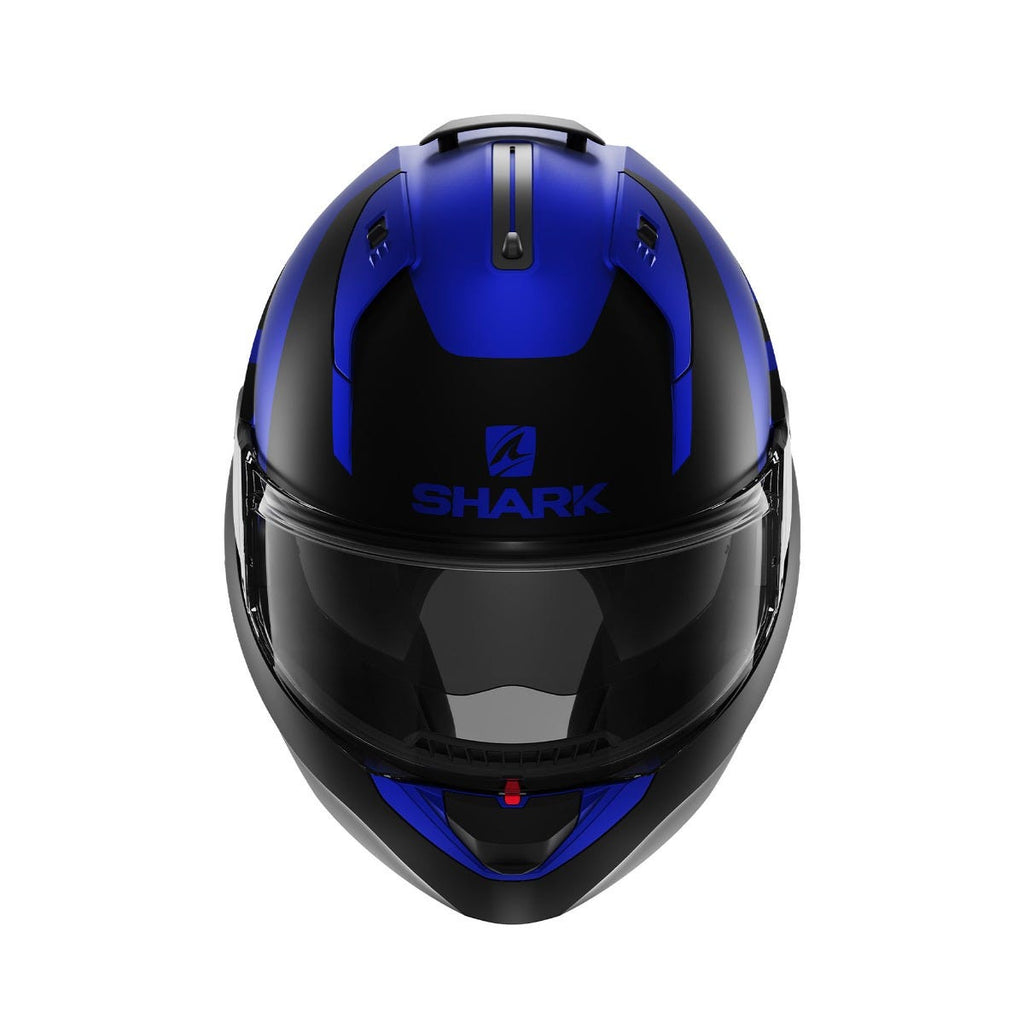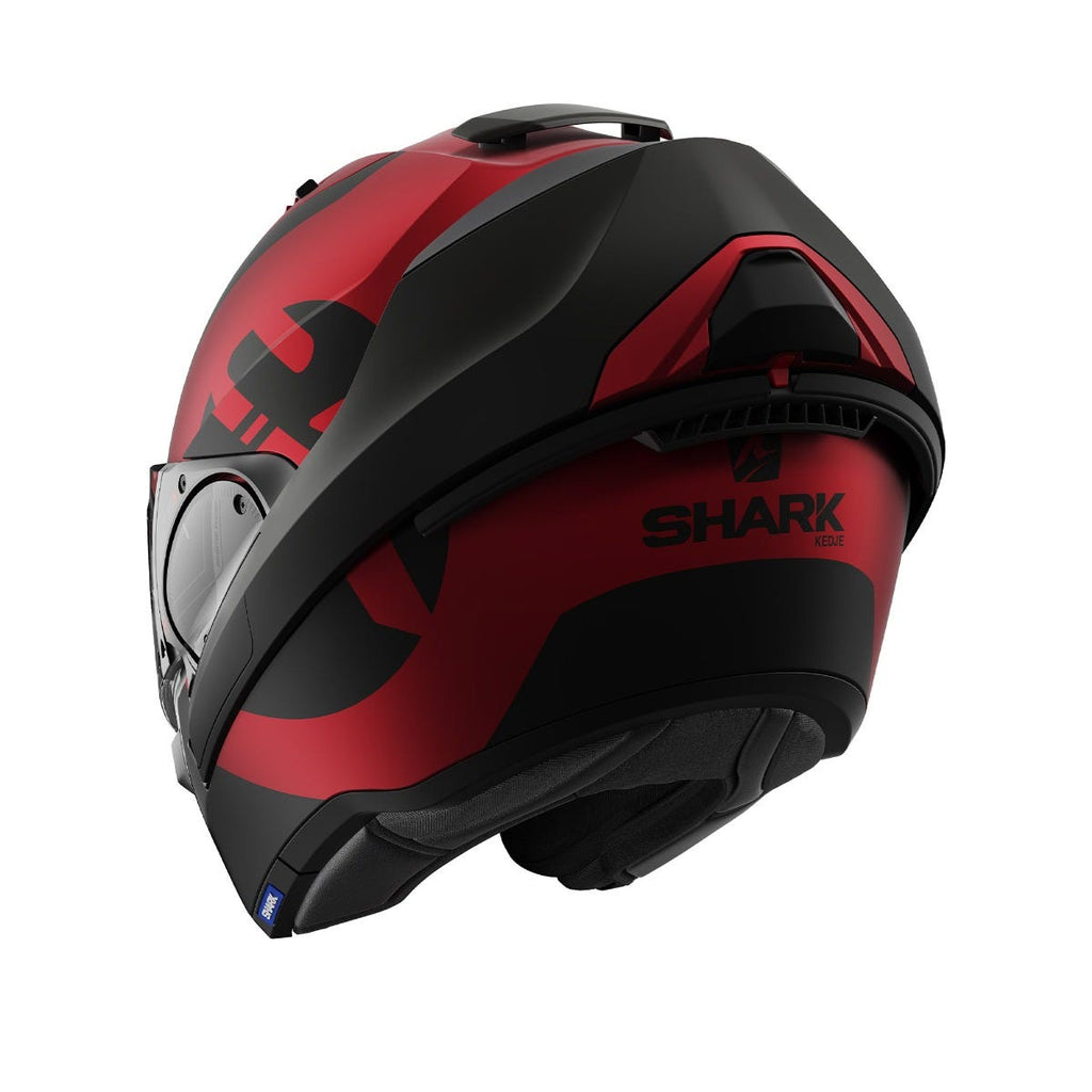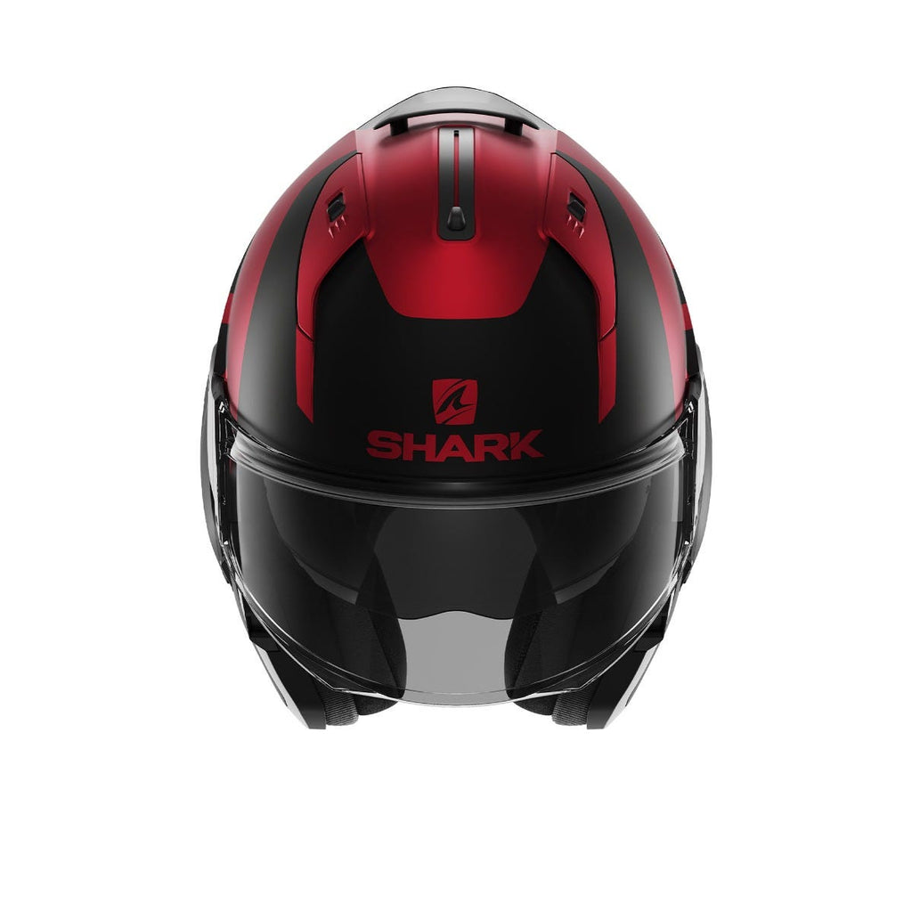 Type of helmet: Modular helmet certified for both jet and integral uses. Type of use: Scooter 125/Maxi scooter/GT Sport/Roadster. The EVO-ES embodies all of SHARK’s expertise in the design of modular helmets for daily users seeking to enjoy optimal protection whether in the jet or integral position. STRUCTURE AND SAFETY: Shell made of injected thermoplastic resin 2 shell sizes for optimal morphological adjustment Micro lock buckle system Multi-density EPS VISOR: VZ 150 model, anti-scratch and anti-fog visor The patented “Auto-up / Auto-down” system allows automatically lifting the visor upon raising or lowering the chin guard UV380-labeled visor treated to resist scratches Quick visor release system INSIDE: “BIRD EYES” lining fabric, black color EasyFit system: Optimal comfort for riders wearing glasses Removable interior suitable for machine washing (30°C max) Magnetic and retractable soundproof breath guard “King size” available in certain specific colors Slot reserved for the Sharktooth® intercom AERODYNAMICS AND VENTILATION: 3 air inlets 2 air extractors Aerodynamics optimized by means of CFD (Computational Fluid Dynamics) design studies