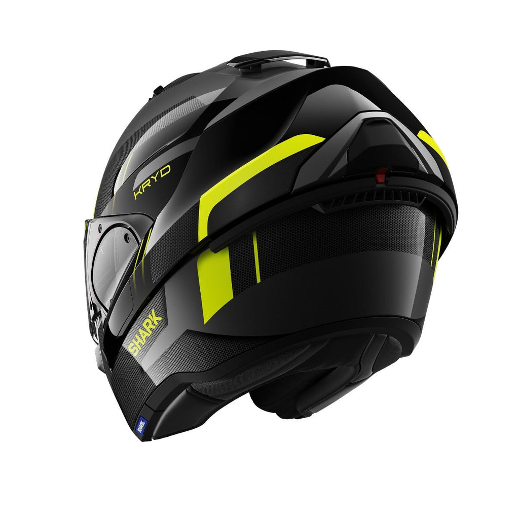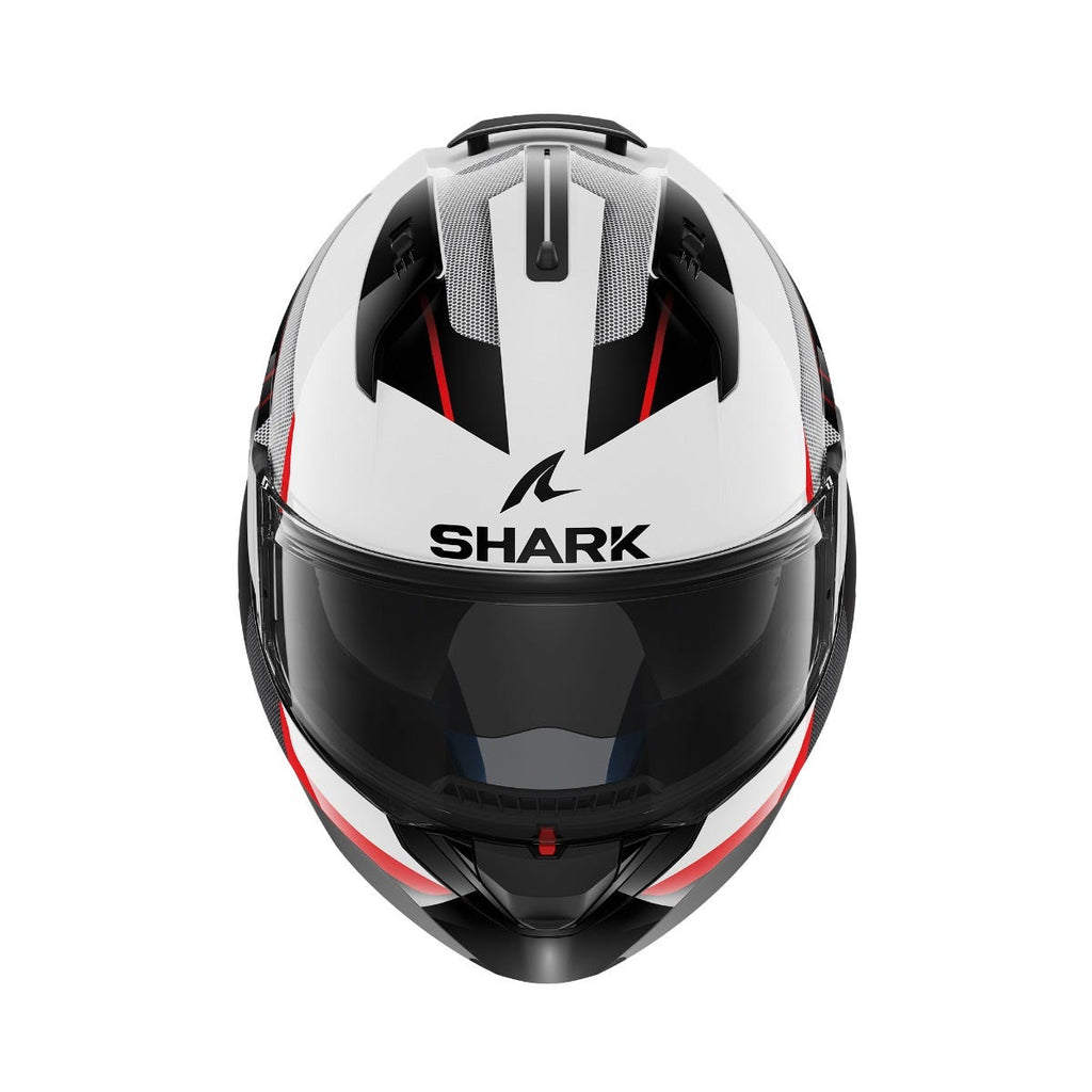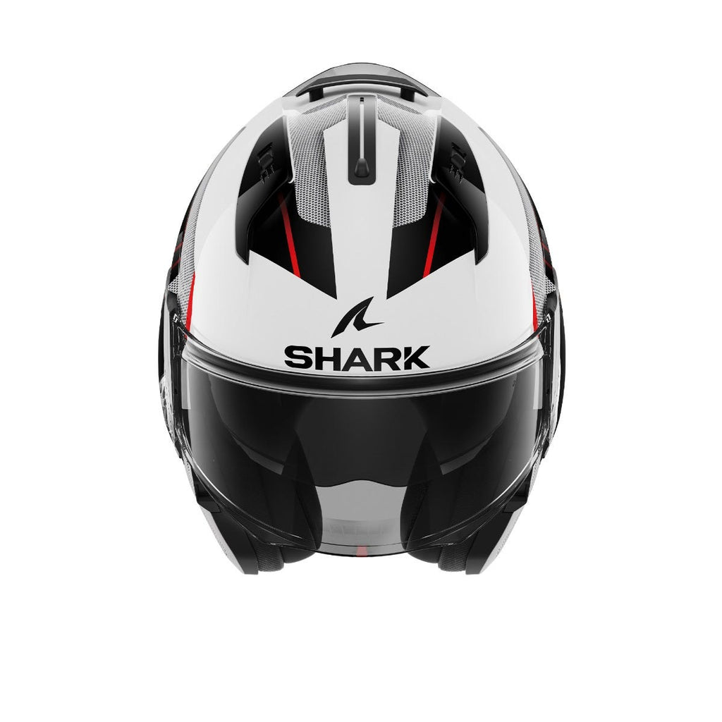 Type of helmet: Modular helmet certified for both jet and integral uses. Type of use: Scooter 125/Maxi scooter/GT Sport/Roadster. The EVO-ES embodies all of SHARK’s expertise in the design of modular helmets for daily users seeking to enjoy optimal protection whether in the jet or integral position. STRUCTURE AND SAFETY: Shell made of injected thermoplastic resin 2 shell sizes for optimal morphological adjustment Micro lock buckle system Multi-density EPS VISOR: VZ 150 model, anti-scratch and anti-fog visor The patented “Auto-up / Auto-down” system allows automatically lifting the visor upon raising or lowering the chin guard UV380-labeled visor treated to resist scratches Quick visor release system INSIDE: “BIRD EYES” lining fabric, black color EasyFit system: Optimal comfort for riders wearing glasses Removable interior suitable for machine washing (30°C max) Magnetic and retractable soundproof breath guard “King size” available in certain specific colors Slot reserved for the Sharktooth® intercom AERODYNAMICS AND VENTILATION: 3 air inlets 2 air extractors Aerodynamics optimized by means of CFD (Computational Fluid Dynamics) design studies