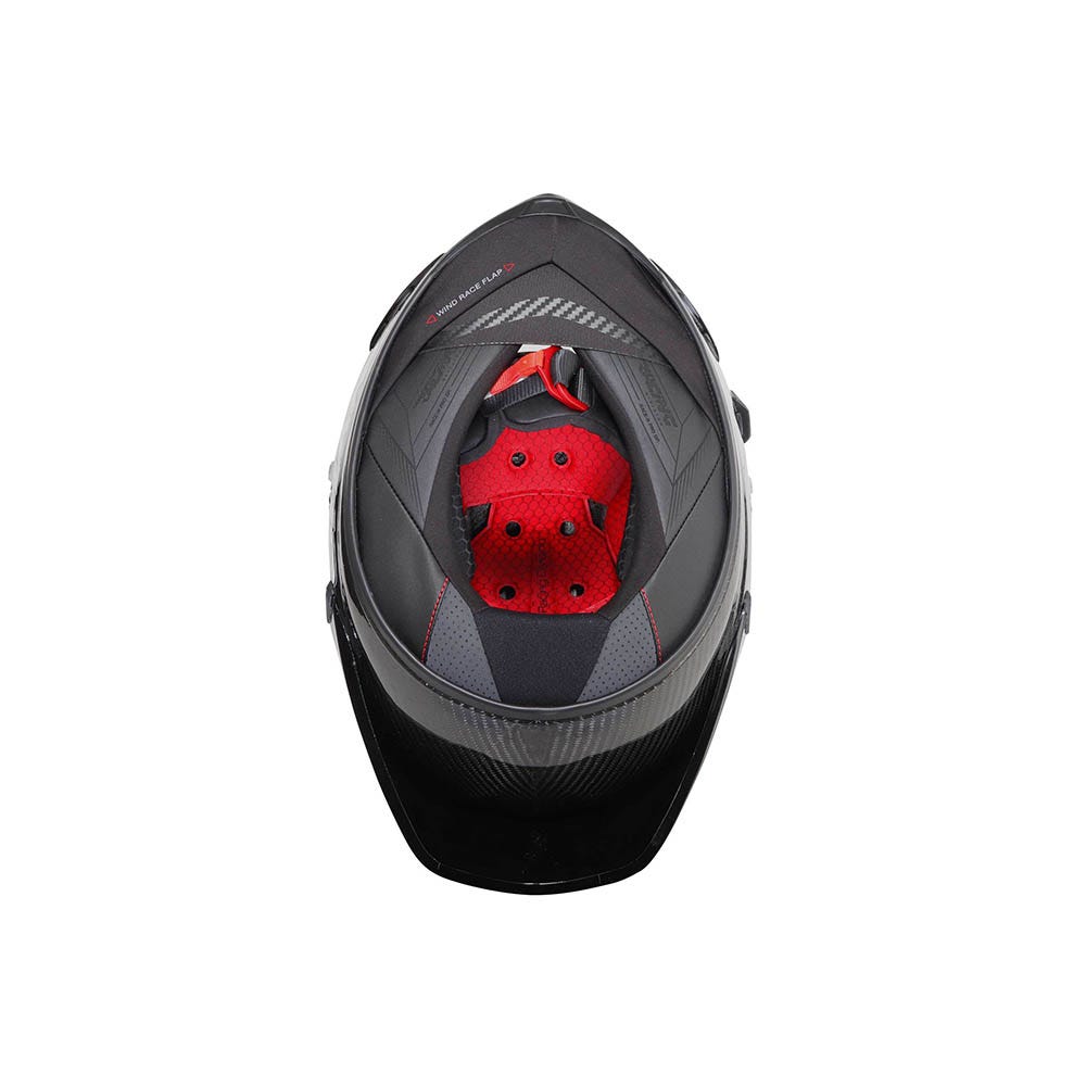 Shell built using reinforced COVA RS (Carbon On View & Aramid Racing Structure) in order to fully meet all requirements of the new FIM Racing #1 standard. This new, 100% Carbon Aramid structure offers increased resistance to both abrasion and compression, as well as an enhanced anti-delamination performance. The multi-density EPS (Expanded Polystyrene) has been optimized for improved shock absorption. New holographic certification label with an embedded QR Code: Helmet traceability with official identification by the Race Marshal before entering the track.