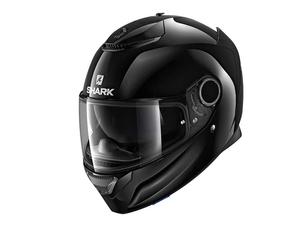 - Aerodynamically-shaped SHARK Skin side fastenings on the peak favoring passive noise abatement.