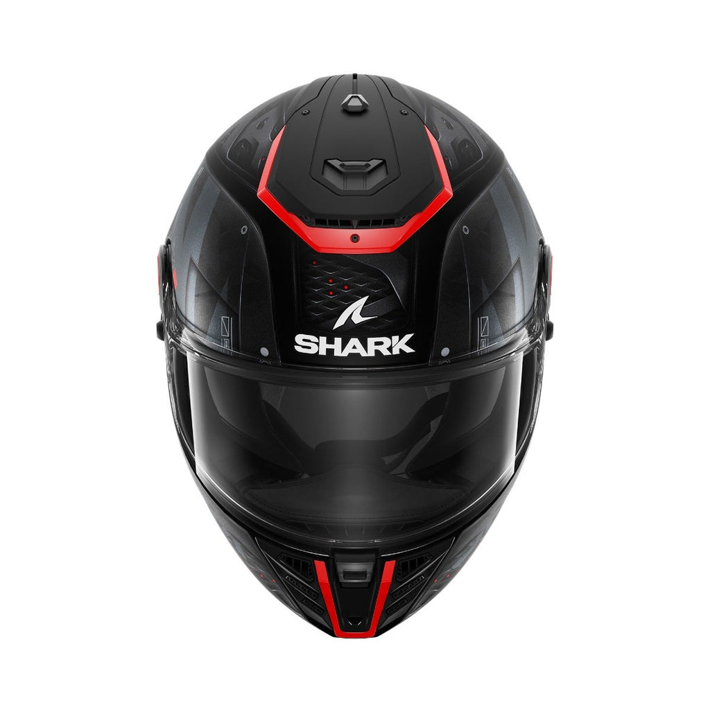 Type of helmet: Full - face helmet. Type of use: Roadster. STRUCTURE AND SAFETY: Shell made of multiaxial fiberglass 2 shell sizes for optimal morphological adjustment Double-D ring strap Multi-density EPS VISOR: Optical Class 1, scratch-resistant coating visor Pinlock 120 Max Vision® included in the box New ergonomic visor locking system, complete with an airflow position “Ultra soft” visor notching movement UV380-labeled visor treated to resist scratches Quick visor release system INSIDE: SANITIZED®-labeled ALVEOTECH lining fabric featuring antimicrobial properties Removable interior suitable for machine washing (30°C max) 3D morpho cheeks Removable chin cover EasyFit system: Optimal comfort for riders wearing glasses Dual use anti-fog breath guard Anti-fog mask Sharktooth® Prime AERODYNAMICS AND VENTILATION: Ventilation : 3 air intake / 4 air outlet 2 air extractors with position ON/OFF switch Aerodynamics optimized by means of CFD (Computational Fluid Dynamics) design studies