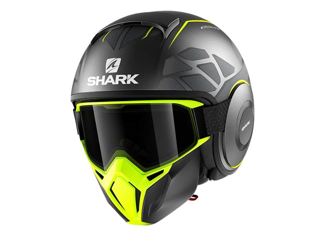 Type of helmet: Jet helmet with both a mask and goggles. Type of use: Neo-retro Roadster / Cruiser.